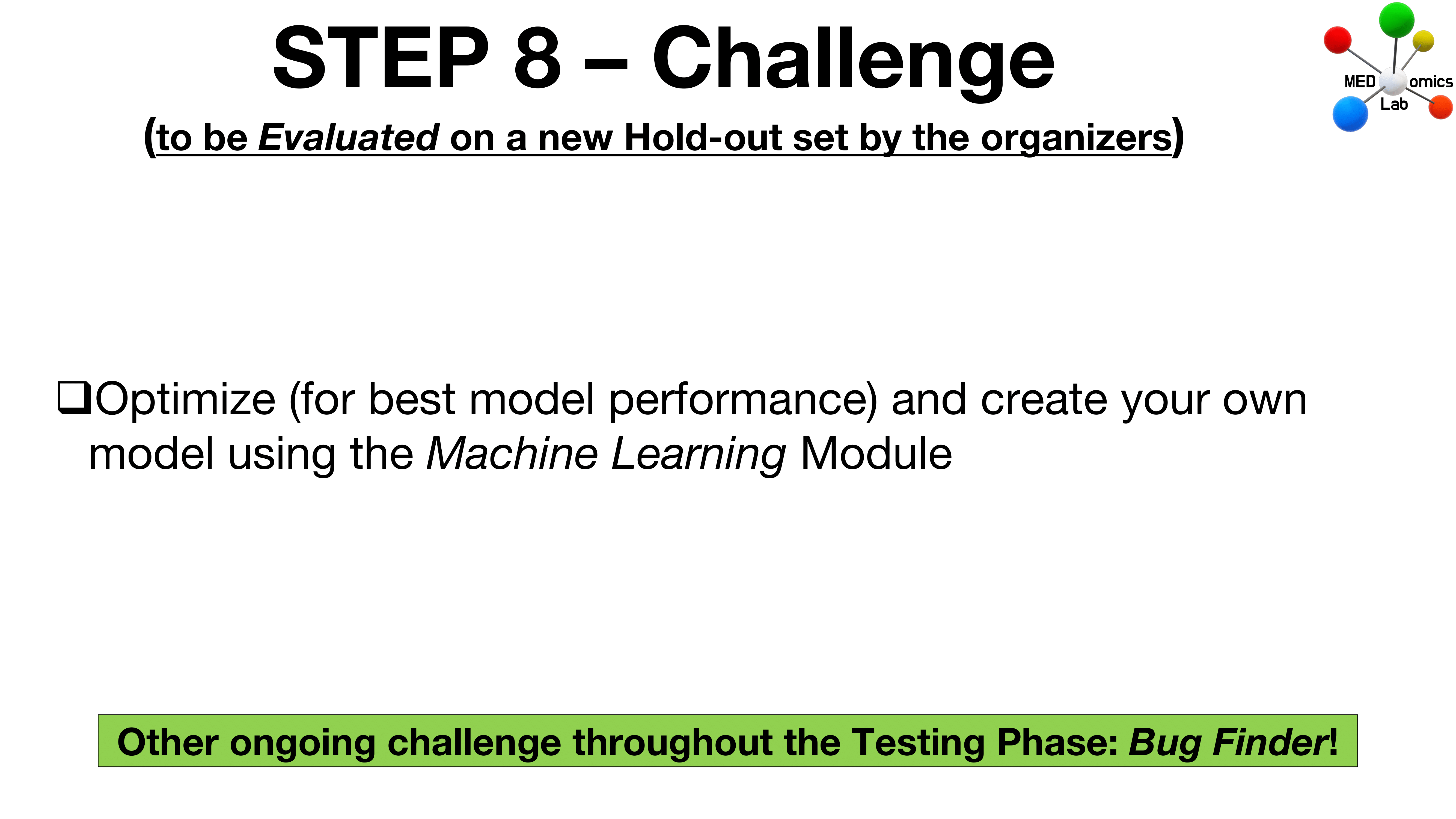 In *Step 8 - Challenge*, you will leverage the knowledge you have gained from the MEDomicsLab platform in the preceding steps of the Testing Phase. You are the master here :clap:!