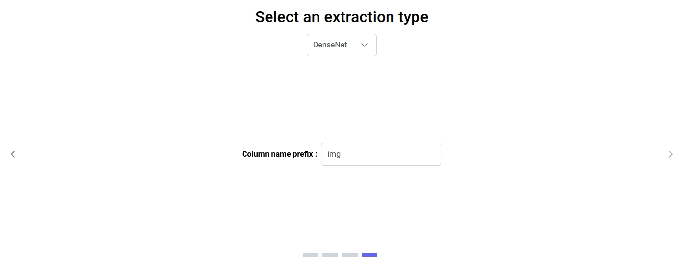You can choose to assign a prefix to the generated embeddings column names. This is useful for entering the MEDprofiles' process in the input module, especially for creating MEDclasses that depend on this prefix column name. The prefix must consist only of letters and/or numbers and cannot be empty. The default prefix is 'img'.