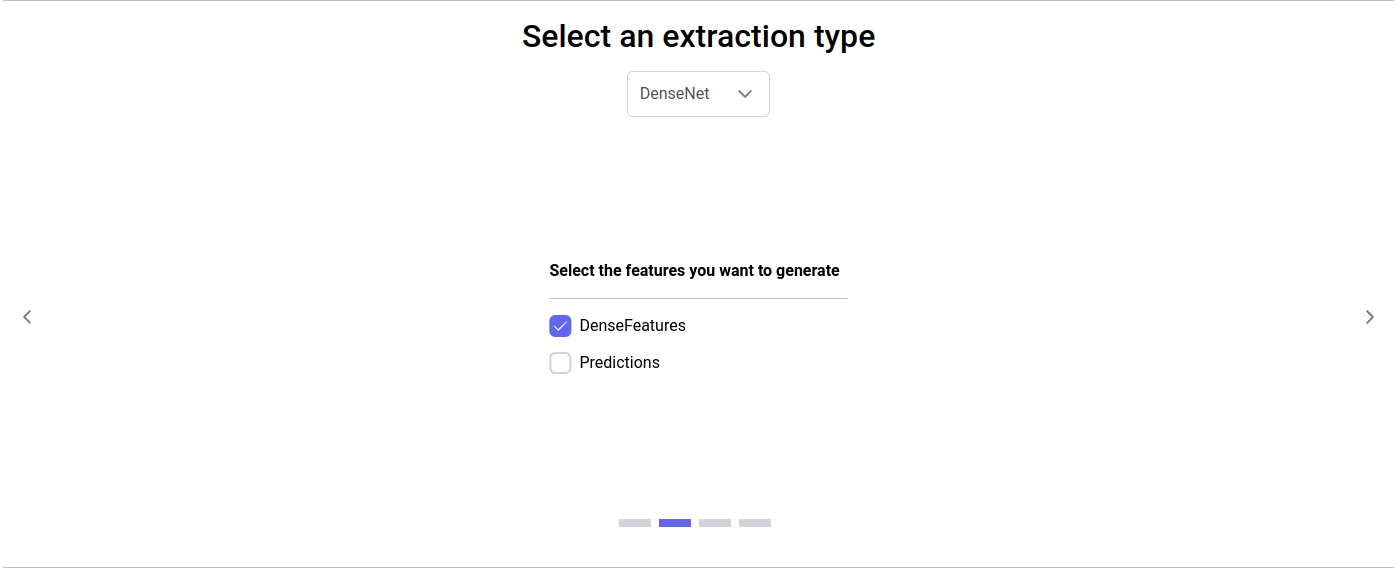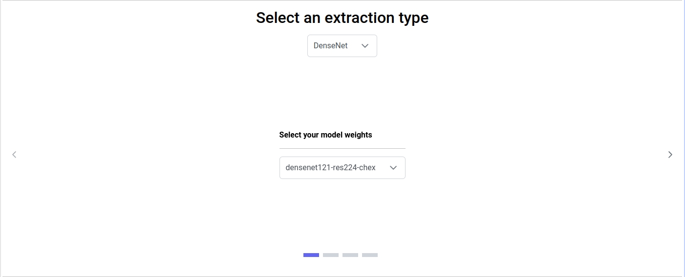 This extraction type uses the pre-trained DenseNet model from the TorchXRayVision python library : https://mlmed.org/torchxrayvision/models.html. TorchXRayVision is a library of chest X-ray datasets and models, therefore this model is intended to be used on chest radiography.