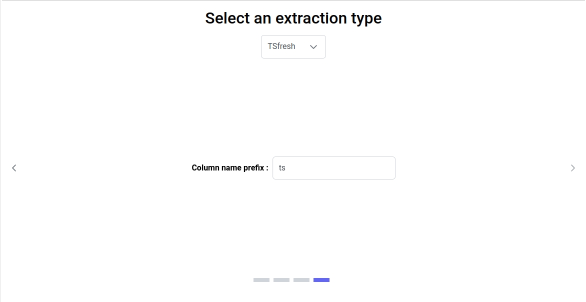 Depending on the options selected earlier, you need to choose the dataset columns that correspond to the necessary information for feature generation. The column selection for each required information will be filtered by types (for example, if the required information is time, only the columns in your data table containing date-time types will be displayed).