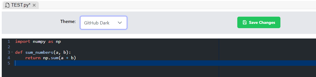 À partir de la v1.5.0, **MEDomics introduit un éditeur de code intégré**, permettant aux utilisateurs de modifier sans effort des fichiers Python, texte, Markdown et JSON directement au sein de la plateforme. Construit sur le [**react-ace** package](https://github.com/securingsincity/react-ace), l'éditeur propose une variété de thèmes et un solide support pour plusieurs types de fichiers. Pour commencer, cliquez simplement deux fois sur n'importe quel fichier pris en charge dans votre espace de travail — il s'ouvrira automatiquement dans l'éditeur, où vous pourrez apporter des modifications et enregistrer vos changements. Ci-dessous quelques captures d'écran montrant le nouvel éditeur en action :