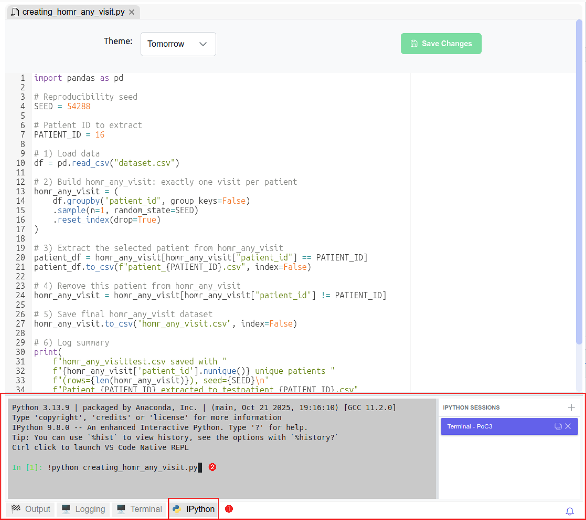 Créez un *Python* fichier (en dehors de *MEDomics*) nommé  `creating_homr_any_visit.py` dans lequel insérez le code suivant :